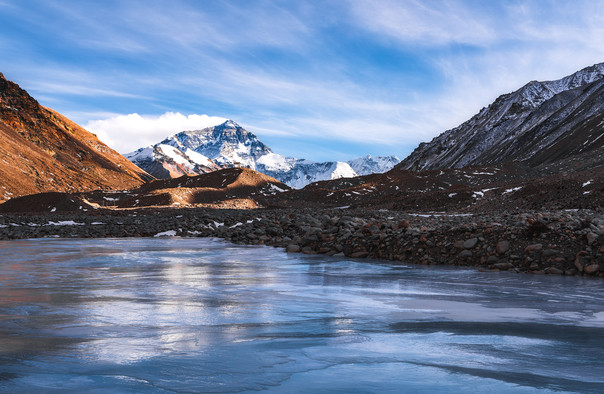 珠峰大本营,是为了保护珠峰核心区而设立的一片保护地带,是观赏拍摄珠峰的好位置之一,也是登山队从中国这一侧攀登珠峰时的大本营。每年的4-6月是登山季,是珠峰大本营热闹的时候,也是能拍摄到珠峰旗云的时候。珠峰大本营交通不便,汽车只能开到绒布寺旁边的帐篷营地,游人通常包车从日喀则市区或拉萨前往,来回大约需要4天。部分游客会在帐篷营地留宿,价格不贵,但硬件条件比较艰苦。大本营有武警值守,旁边有一块立碑,游客多在此合影。此外,还可以在帐篷邮政所买明信片盖邮戳,其中有2008年奥运圣火登珠峰的邮戳,还是很有纪念意义的。需要注意的是,由于这里处于边境地带,出发前需提前办理边防证,部分地段路况较差。