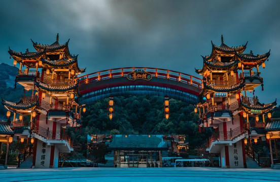 到了晚上,这里将上演隆重庄严的众妙阁秀,现代科技灯光与古建筑的结合如梦似幻,给人带来极具视觉冲击力的体验。