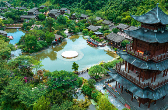 葛仙村度假区位于江西省上饶市铅山县,2016 年 6 月由鑫邦集团投资建设,目前已累计投资超15.69亿 ,背靠千年道教名山葛仙山,定位以打造“江西旅游新地标”为目标。项目分为两期,规划建筑面积约30万平方米,项目核心景区面积650亩,包括集散中心区、葛仙村度假区、天镜台景区三大板块,未来还将继续延山谷向外发展。