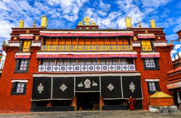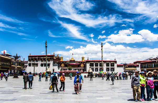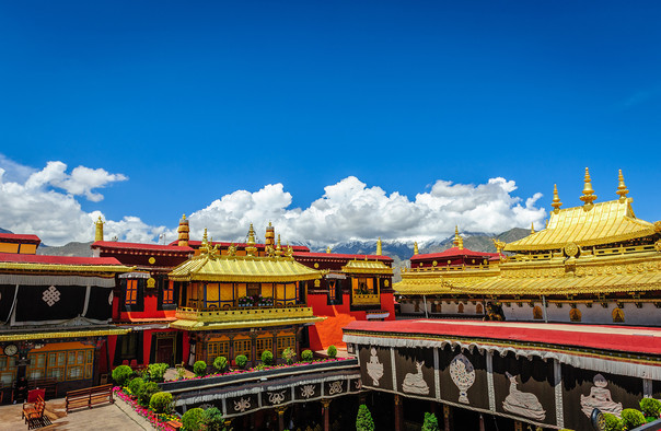 大昭寺,藏语为“觉康”,又名“祖拉康”,是藏传佛教信徒朝拜的终点,在他们的心中,大昭寺之神圣,并不逊于布达拉宫。不论从地理位置上,还是在藏传佛教信徒的心目中来说,大昭寺都是名符其实的藏传佛教圣地和中心,在藏传佛教史上拥有极其崇高而圣洁的地位。大昭寺始建于公元七世纪中叶,是藏王松赞干布为了安放其王妃尼泊尔尺尊公主,从家乡加德满都带来的释迦牟尼8岁等身佛像而建,公元1409年,格鲁派创始人宗喀巴大师在大昭寺宏扬佛法,举行传昭大法会,从而奠定了其在藏传佛教史上的重要地位。公元八世纪,大唐文成公主入藏时从长安带来的释迦牟尼十二岁等身像供奉于大昭寺内,成为大昭寺的镇寺之宝,是游客及前往朝拜的人必不可错过的看点之一。