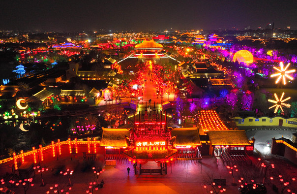 看完演出夜幕已经降临,景区内的亮化工程将会开启,走在路上到处都悬挂着大红灯笼,浮光掠影,熙熙攘攘的市井街道灯火通明,散发着与白天不同的魅力。此时,登上园内的上善门,可以将整座开封城的夜景尽收眼底。