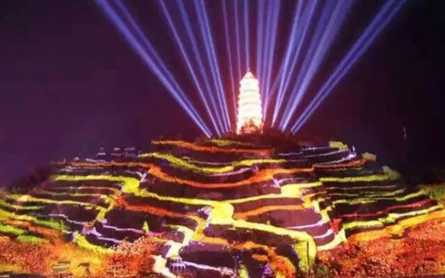 每当夜幕降临,宝塔山在灯光的照射之下,变化出不同的色彩,壮丽恢宏,大气磅礴。宝塔山灯光秀将实景、音乐和灯光融为一体,利用整个山体和塔体进行灯光表演,内容之丰富,面积之广阔,堪称全国之最。