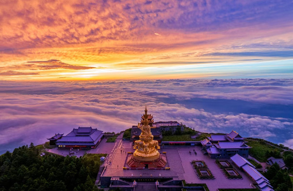 零公里位于峨眉山的山腰处,海拔1300多米。气候温暖而不炎热是夏季避暑,冬季看雪的好地方。此处云雾缭绕,有许多特色农家乐,宛若仙家住处。