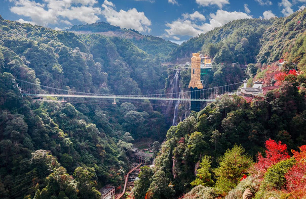 侠天下玻璃天桥是一定不能错过的体验项目。玻璃天桥悬空于险峻峡谷中,下方紧邻原始森林,边上是近300米高的老鹰寨瀑布,走在玻璃天桥,如同空中漫步,有种“万丈深渊凌空而过”的刺激感。除此之外,侠天下玻璃天桥的桥面上还彩绘着玻璃破碎、空洞等逼真、险象环生的3D图案。