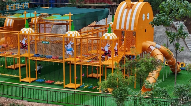 旅游区的各种游乐设施都是由特种钢材、木材、绳索等材料制成,结构稳固、安全可靠,孩子们可以在这里尽情玩耍,锻炼身体,提高协调性和平衡能力。