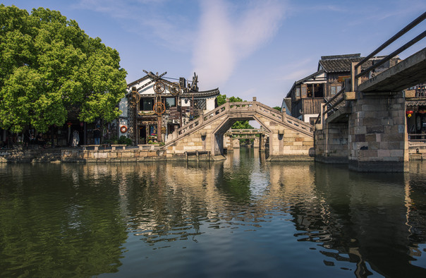 西塘的廊棚大多为临河而建,走在廊中可以逛逛沿街各色店铺,另一边则是河道,时而有摇橹船载着游客缓缓而过。有的廊棚还设有靠背长椅,可供人休息,河两岸的廊棚之间还有数座石桥相连。漫步在廊棚下,或找一家沿河茶坊搭两把椅子坐在河边,边享受着河风边品茶闲聊,十分悠闲。