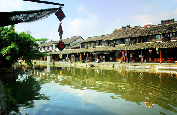廊棚也叫雨廊,不少江南古镇都有,外观看来就是有木柱支撑、带有瓦片屋顶的街道。而西塘的廊棚很有特色,因为只要你在古镇内沿河行走,头顶上总会有廊棚为你遮风挡雨。尤其是在雨天,走在廊棚下听着雨声淅沥,赏廊外迷蒙的景色,意境浓郁,因此西塘的廊棚有着“烟雨长廊”的美名。