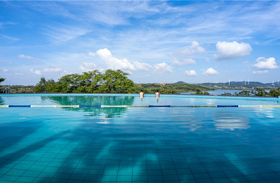 “天沐温泉”温泉区包括室外森林养生 温泉和室内温泉SPA馆,可同时容纳1500人沐浴温泉,日接待量可达上万人。室外温泉区包括“鼋山五福泉”、“鼋水六德汤”、“美芦荟温泉区”、“森林静泡区”、“草本养生谷”、“SPA动感温泉区”、室外无边界游泳池、石板温泉、亲亲温泉鱼疗等,共设有66个室外特色功能温泉浴池,供游客尽情享受。