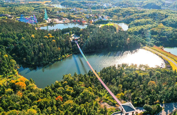 其中,游乐区设置20多个大型游乐设施,包括海盗船、云霄飞车、360度陀螺式旋转的“摩天飞碟”、60米高自由落体设备等。儿童主题馆区设置4个3D电影院。恐龙谷内100多个恐龙,配以光电等设备,再现真实场景。生态休闲区种了许多樱花、杜鹃等。茶花、樱花、牡丹、梅花、桃花,和绿油油的茶园,散发着沁人心脾的清香。现已建成青龙湖人居森林,还有着高尔夫球会,十分适合家庭前往游玩。