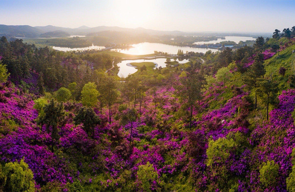 这里生长着3万株茶花、1万株樱花和牡丹,成片的梅花、桃花,和着绿油油的茶园,散发着沁人心脾的清香。九曲十八弯的山路上,高大的雪松随着山势凸显出浓淡相间的层次感,金色的合欢点缀其间,银杏、柳杉等保健植物,棕榈、冬青等蜜源植物,爬山虎、紫荆等鸟嗜植物,百里香、蒲公英等芳香植物,都在这里“聚会”,鸟语花香,别有洞天。