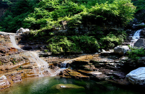 西莲峡谷,从景区大门到天梯,峡谷两边崖壁相对高度在30米至200多米间,主要自然景观有天门口、九莲潭、天壶瀑布、天梯等。这里的九莲潭水清幽,天壶瀑布飞流直下;关后沟大峡谷,自景区大门一直到龙凤瀑布,全谷处处都是各种岩石,谷底河水清澈,峡谷的北端地貌如同葫芦,东西各有一条瀑布,当地称为“龙凤瀑布”;从关后沟峡谷尽头的龙凤瀑布处,有缆车可以到达绝壁长廊和红岩峡谷,主要自然景观有红岩峡谷、绝壁长廊、太行风光等,风格粗犷豪放。