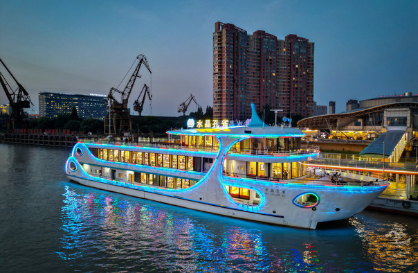 继凤凰号游轮之后,2023年斥巨资打造的五星豪华游轮“水晶孔雀游轮”投入运营,这是一艘属于芜湖人自己的五星豪华游轮。水晶孔雀游轮长62米,宽15米,全船载客量500人,集餐饮美食、旅游观光、宴会服务为一体。她的诞生,打造了芜湖长江旅游新亮点,提升了芜湖市的城市形象和品位,为芜湖城市名片又增添一笔重彩,游轮将乘风破浪,续写长江游轮的荣光,重振长江旅游事业,开启芜湖十里江湾文旅新篇章!