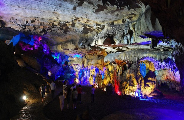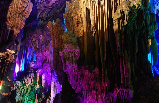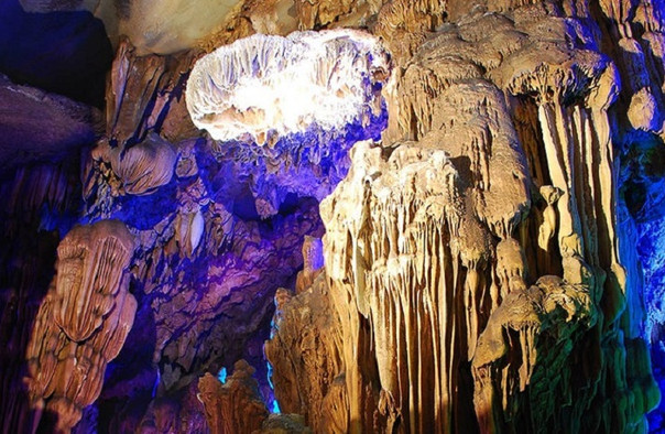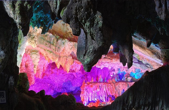 古佛洞天位于韶关与乐昌两市交界处,属大型石灰岩溶洞,洞内石笋丛生,钟乳石林立,上下重叠三层,高处达30米,总面积逾12000多平方米。因其奇石形状独特,酷似仙佛而呼之欲出,所以得名“古佛岩”。岩洞中石花、石柱、石幔不一而足,形态迥异而又色彩斑斓,宛如缤纷画卷。古佛岩中稀罕的当属可追溯至三亿年前的海底珊瑚化石,其形态至今生动可辨,纹路细致,堪称天工神迹。游人如果一路穿过石巷,更可以到达高处的逍遥宫,此处景致层次分明,且愈发富于变化,远处山岳交相掩映,茂林翠竹依山罗列,奇花异草更比比皆是,这来自于大自然的种种视觉震撼,令人叹为观止。