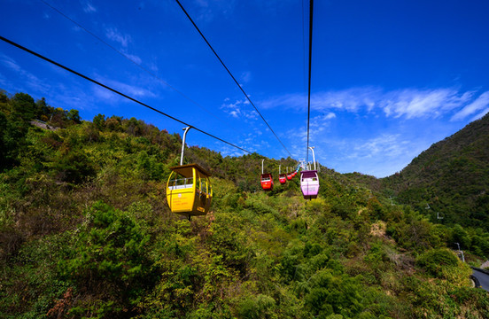 园内设有1号、2号两段缆车,1号缆车起点为售票中心,终点为半山腰,2号起点为半山腰,终点为山顶,两段缆车全长将近3公里,四面通风,不仅让人感受到色彩的浪漫,更让人近距离与自然接触。