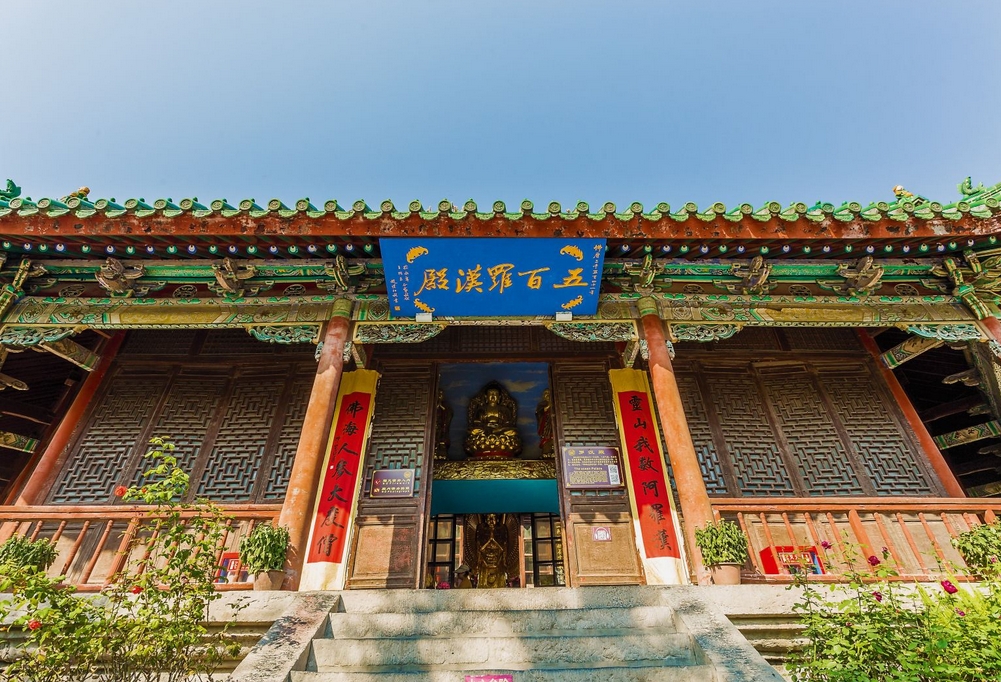 寺中的罗汉殿,俗称“八角琉璃殿”,是八角回廊式建筑。殿内回廊中有大型群像“释迦牟尼讲经会”,五百罗汉姿态各异,造型生动。在罗汉殿中间,游客还能观赏到一座木结构的八角亭,亭中有一尊高约6米的“四面千手千眼观音”木雕像。雕像是清乾隆时期的文物,用一株白果树雕刻而成,每面有6只大手,200余只小手,每只小手心有一只慧眼,总共1000余只,故名千手千眼佛。