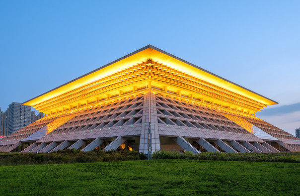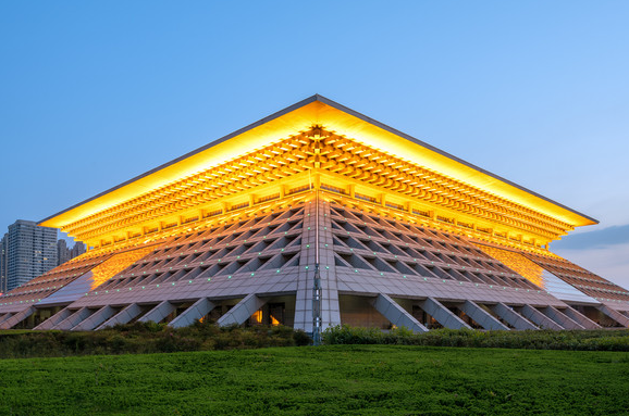 博物馆在市政府前面,有时晚上在两栋建筑之间的广场上,会有音乐喷泉的表演。