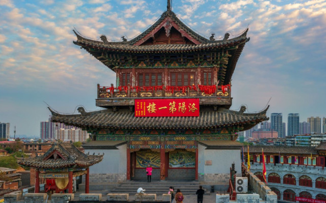 丽景门位于老城区西大街西端,现已成为洛阳旅游的网红打卡地,占地面积近2万平方米,是于2002年依原貌在原址重建的,有诗人用“洛阳牡丹甲天下,丽景城楼世无双”来赞美它无限的魅力。