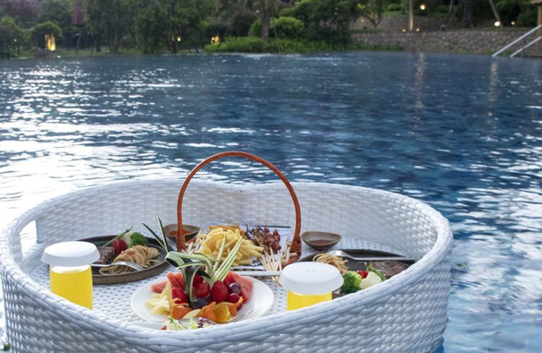 丹寨万达锦华温泉酒店云沁温泉依山而建,温泉中心分三层,一层为接待大堂与多功能休息与、配备各种娱乐休闲设施,能满足不同人群的爱好与使用功能,二层为餐饮层,能够满足温泉旅客餐饮需求的同时也能满足酒店住客的餐饮需求。负一层为男女更衣区。