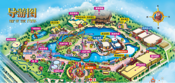 乐园由超大型室内游历探险项目秦陵历险;跟踪式立体魔幻表演项目魔法城堡;大型高科技水灾难体验项目决战金山寺;现代大型主题高科技娱乐项目西游传说;世界顶级木质过山车丛林飞龙等20多个室内外项目组成,包含主题项目、游乐项目、休闲及景观项目共200余项。
