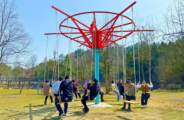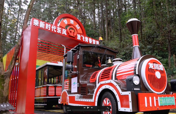 顺着主游览线路往前来到三里亭,这里是景区的中转站,由此往左通向80公社,向前则是70公社。通往70公社的是一条幽长的林荫小道,树是当年的知青们种下的,道路也是当年开挖的机耕路。半路有一摘星台,登上楼去,龙川湾的景色尽收眼底。