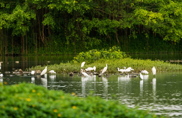 小鸟天堂是一座湖心小岛,因岛上有一棵历史悠久的大榕树,它独木成林,林中栖息着成千上万只鸟雀而闻名。巴金先生《鸟的天堂》所描述的正是这里,百鸟出巢、百鸟归巢之景壮观迷人。