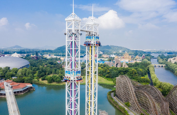 双塔式太空梭,一座塔由下而上高速弹射,另一座则由上而下急速降落。上下往复中,完美融合了弹射与坠落的两极体验。