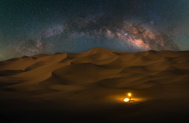 另外,库木塔格沙漠内也有两条徒步路线。一条是从沙漠公园处到栏杆乡,大约10公里路程,可以一天走完。另一条是从沙漠公园处穿越到沙漠西南侧的迪坎尔村,这条路线全程四十多公里,也被称为南北大穿越,由于沙路难走,大约需要3天时间走完,且强度较大。需要注意的是,在沙漠内徒步风险较大,不适合没有户外经验的普通游客,更不适合独自出行。建议户外爱好者跟随专业团队一起行动,并备足沙漠穿越的装备。