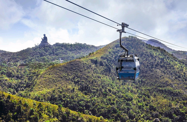 · 坐在舒适宁静的车厢内,一览香港国际机场、大屿山的山光水色、天坛大佛及昂坪高原360度全景