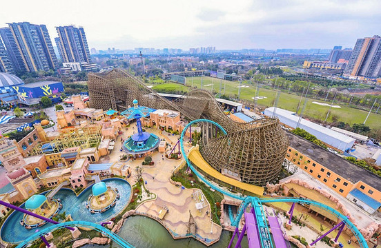 园内北端的巴蜀区,这是一个以消失的鱼凫古国为主题的区域,你可以乘坐“雪域飞龙”在古蜀碉楼间迂回驰骋,也可以在“渔猎漂流”中体验到激流捕鱼的乐趣。