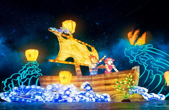 欢乐谷中的飞行岛区,是一片四面环水的世外桃源,有一个可以升上半空的观览器,仿佛一只巨大的手臂,把游人托向高空。