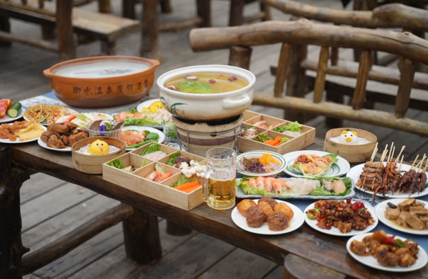 御水温泉特色露天泡池 匠心独具风情6大泡池区,60处泡池,汲取日月精华,主要有:自然泡池区:古树竹林间 浑然与天地相连;情侣泡池区:浪漫、私密、情调无边;加料泡池区:取名贵稀有之材的养生汤池;动感泡池区:坐式、躺式,尽显美妙动感;亲子儿童区:卡通造型泡池 恍若梦幻童话世界;竹梢泡池区:观景最高处、好似沐浴云端。