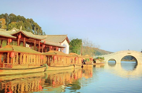 弥勒市锦屏后海景区位于红河弥勒市锦屏山景区北部后山低谷,以水景观、古建筑、歌舞演出为核心元素,着力打造以水舞秀为景幕、绚烂光影为妆点、真人汉文化歌舞演出为核心的大型户外水上歌舞视听盛宴。