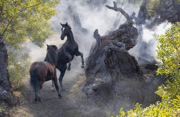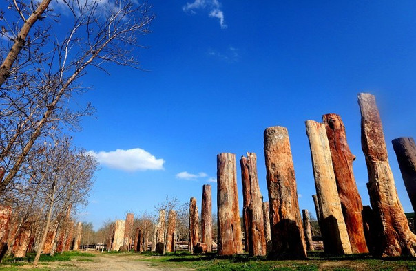新疆古生态园汗血马基地位于乌鲁木齐市区鲤鱼山上,始建于2005年,占地近300亩,园内有硅化木、胡杨木、黑铁陨石、草原石人、硅化木、普氏野马、汗血宝马等大量珍稀生态资源,园区还配套有 “野马-丝路驿站文化主题酒店”。这些景观融合在一起,形成了新疆古生态园“马、画、园、店”四大主题。