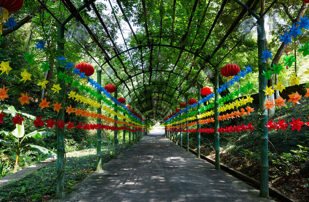 森林温泉区以现有的自然环境为中心,按照佛禅文化的仪轨和内涵,创造出依山而建、错落有致、别有洞天的自然环境和人文景观,处处体现人与自然,人与佛法的和谐,让人们在此尽情享受温泉、竹林、绿荫、禅意的佛化风光。使人在温泉休闲中,不知不觉体悟到佛法的慈悲与禅泉的温润滋养。通过温泉沐浴佛化,洗涂内心垢秽,使身心清净圆满。