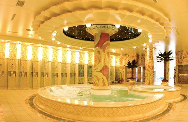 室内项目:温泉泡池、造浪池戏水池、桑拿房蒸房、休息厅睡眠厅;