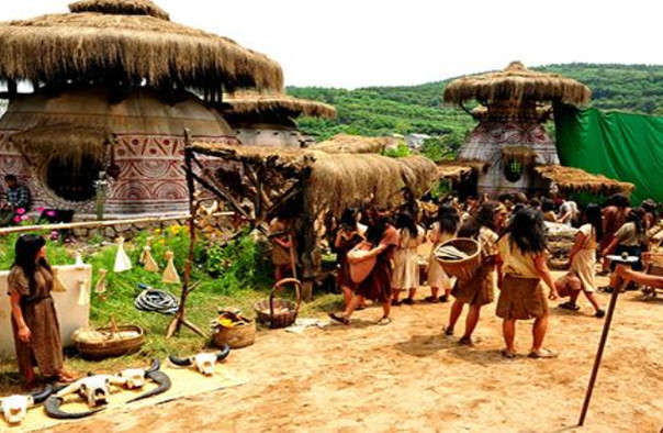 宝鸡炎帝影视基地景区位于宝鸡市渭滨区茵香河文化旅游区,是一个以炎帝文化为主题的影视基地和主题公园,由37个陶屋单体建筑、集市区和13棵景观造型树构成。景区以原始部落为设计原型,再现了上古时代的生产、生活场景,成为西部地区独具地方特色的影视基地。炎帝影视基地分神农部落和西陵部落两个部分。神农部落主要包括会盟所、议事厅、炎帝居所、精卫居所、勐康居所、部落长老居所、族人居所及集市区等主要景观。神农部落是神农氏所居住和生活的部落。神农氏踞今5500年至6000年前生于宝鸡的姜水之岸,以火德称氏,故为炎帝,尊号神农,并被后世尊为中国农业之神、医药之神和太阳之神。神农氏的出现,标志着我国神话时代结束、农耕社会的开始。神农氏对人类的大贡献是建屋取火、部落婚嫁、百草五谷、豢养家畜、种地稼穑,开创了中华民族从蛮荒走向文明的第一步。神农部落是对上古时代神农氏生活和社会活动的集中复原。通过对神农氏居住、生活、集市贸易、手工制作等场景的还原,先民那种纯朴、自然、和谐的原始生态和苦苦追求人类进步的伟大精神如闻其声。西陵部落主要包括树屋、景观造型树、议事厅(竹楼)等主要景观。西陵部落是中华民族古老的历史长河中,神秘消失的一个古老国度。追朔远古时代的西陵古国,是5000年时期中华大地一个赫赫有名的古国,从这个古国里走出了轩辕黄帝的正妃嫘祖。嫘祖是我国的“蚕丝鼻祖”,她开创育桑养蚕之法,抽丝织巾之术,肇造衣饰文明,结束了人类“树叶兽皮”赤身裸体的蛮荒时代。她兴起“八拜成婚”的文明婚姻礼俗,从而又被称为“婚姻文明”的创始者。大约4500年前,有熊氏部落首领黄帝轩辕在西陵国迎娶了嫘祖,促成了中原大地同成都平原的结盟,使其势力进一步强大;嫘祖也将养蚕缫丝技术传入中原,促进了中原经济的发展,为后炎黄结盟打败蚩尤打下了基础。
