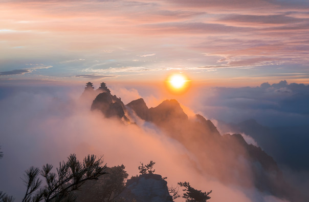 老君山景区相传是道教始祖李耳(老子)的归隐修炼之地,北魏时在山中建庙纪念,后来被封为“天下名山”,历来香火旺盛。山中树木茂盛,风景如画,处处都能看到山泉。金秋时分,这里更是周边地区赏红叶的不二之选。雨后的老君山,云雾环绕在各个山峰中,犹如天上仙境。