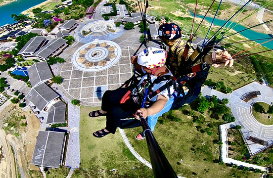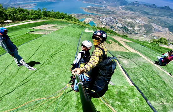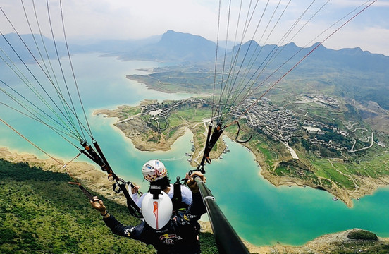 牂牁江国际滑翔伞基地位于六盘水市牂牁江风景名胜区内,距离六枝特区市中心60公里,起飞场建立在海拔1600米的九层山巅,站在起飞场放眼望去,目光所及皆是青山绿水,整个牂牁江美景尽收眼底,待到夕阳西下时,还可欣赏一番别致的晚霞美,从起飞场乘坐滑翔伞起飞后,像鸟儿一样自由飞翔在美丽的牂牁江上,迎面吹拂着江风,俯瞰山水美景,如此美妙的感受,令人终身难忘!