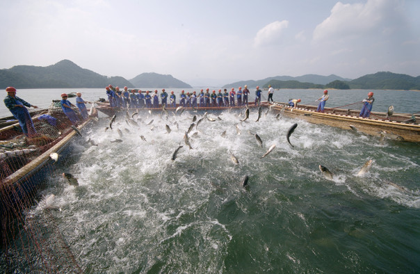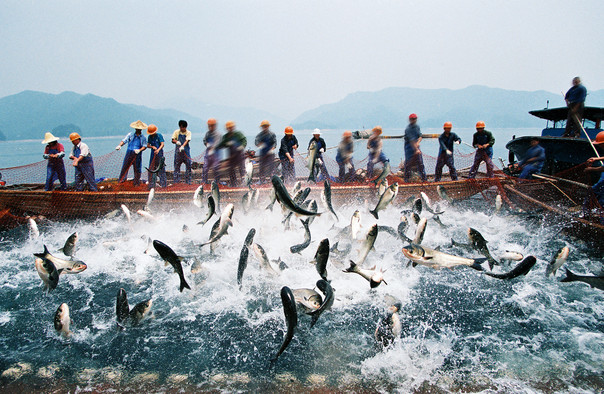 千岛湖巨网捕鱼,原来是杭州千岛湖开发总公司水上捕捞队的一种捕鱼方式。曾经一网捕捞高产量是34万公斤,捕捞大的鱼是青鱼75.5公斤,是目前为止捕获的大的淡水鱼。千岛湖巨网捕鱼主要采用三种网具:第一种是拦网(拦网长4000米,高65米)主要是用来包围湖中的鱼群。第二种是丝网,它的主要功能是驱赶鱼群进入埋伏圈的。第三种是张网,俗称畚斗网,也是我们所说的埋伏圈了。
