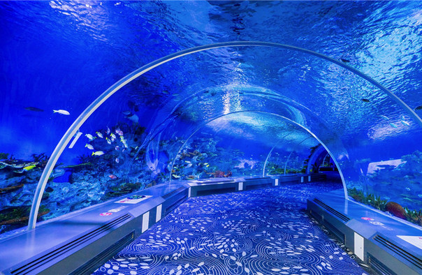阳光海洋馆展示300多种海洋生物,基本涵盖了国内传统海洋馆的展示内容。其特色是采用新颖的生物展示方式,突出阳光主题和开放空间设计,使动物呼吸自然空气,在阳光中畅游:一是将动物开放在自然的空气中生活,借此也可以实现与游客的互动,拉近游客与动物的距离;二是通过穹顶的透明玻璃将阳光引入馆内,照亮水体,穿透水体,配合灯光效果,给游客带来如梦似幻的观赏体验,并达到“照亮你心中的那片海”的现实观赏效果。馆内除了2条海底隧道外,在多个创新型展区,游客可以0度平视与动物面对面,可以90度仰望动物在阳光中畅游,可以-90度俯瞰、360度环视……720度的视觉体验犹如置身海底。尤其是在群游池隧道,可以体验在海底仰望鱼类群游的震撼景象。