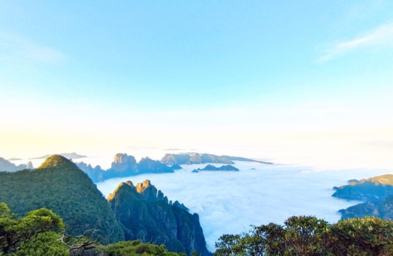 圣堂山景区是4A级景区,位于金秀县城西南面,距离约38公里。景区方圆150 平方公里,由7座海拔1600米以上巍峨奇异的群峰组成。主峰圣堂山顶海拔1979 米,是桂中第一高峰,广西第五高峰;群峰地貌为泥盆系紫红色硕岩和石英砂岩组成。