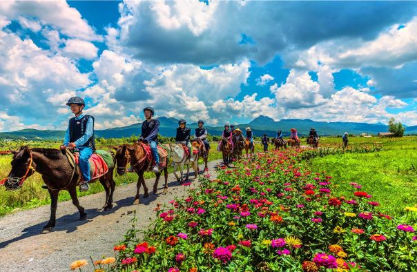整个玫瑰庄园总占地1000多亩,是拉市开采种植高原海拔有机玫瑰基地。有专属区域供游客采摘,进入花海可步行在玫瑰长廊,穿越花海,四周各色玫瑰绽放围绕,直达拉市海湿地。园区的每个角落都可以看到精心培育的玫瑰花海:白玫瑰、红玫瑰、七彩玫瑰、大马士戈玫瑰等,品种各异。庄园内还有骑马、划船等玩乐项目,花花色玫瑰餐厅还可品尝纳西特色午餐,有纳西特色土鸡火锅,纳西特色十大碗,带您品尝纳西族传统美食。