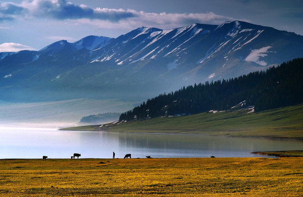 赛里木湖位于西天山北麓,新疆博尔塔拉蒙古自治州境内西南端。是一个以湖泊、湿地、草原、森林、雪山自然生态景观为主要特色,以观光游览、生态休闲、古丝绸之路北道历史文化探源和蒙哈等少数民族风情体验为主要活动内容的高山湖泊、草原型国家级风景名胜区。