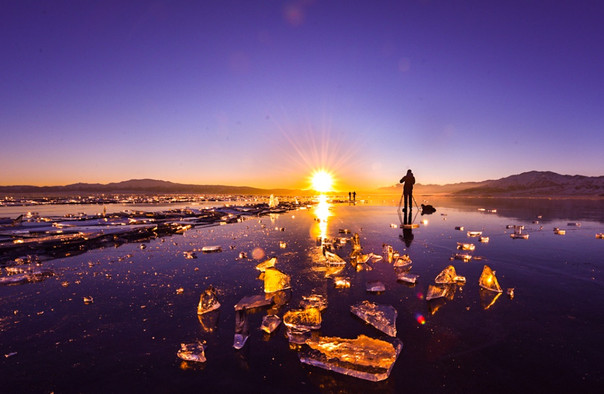 赛里木湖一年之中,春夏花海如潮、金秋水天竞碧,冬季更是如梦似幻。冰凌、冰柱、冰帘、冰珊瑚在湖面起舞,冰玫瑰恣意绽放,更有蓝冰之眼乍现,形态万千、变幻莫测。一天之中,朝霞、晚霞、雨雾、云海、雷电、彩虹、雾瀑瞬息万变。