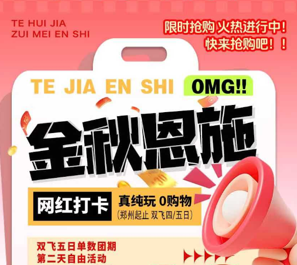 【金秋恩施】双飞4/5日游+恩施大峡谷/浪漫女儿城/梭布垭石林/地心谷