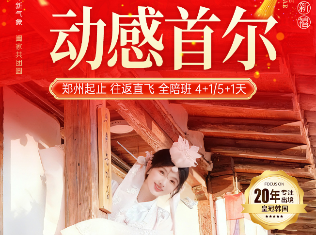 [动感首尔]郑州起止 往返直飞 全陪班 4+1/5+1天