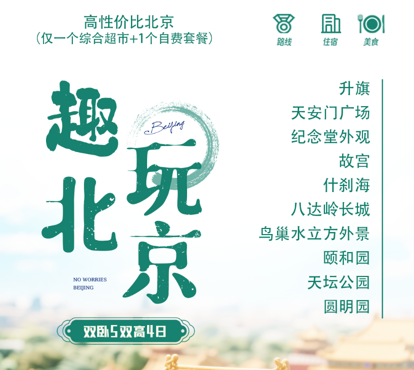 【嗨玩北京】升旗/天安门广场/纪念堂外观/故宫+4/5日游