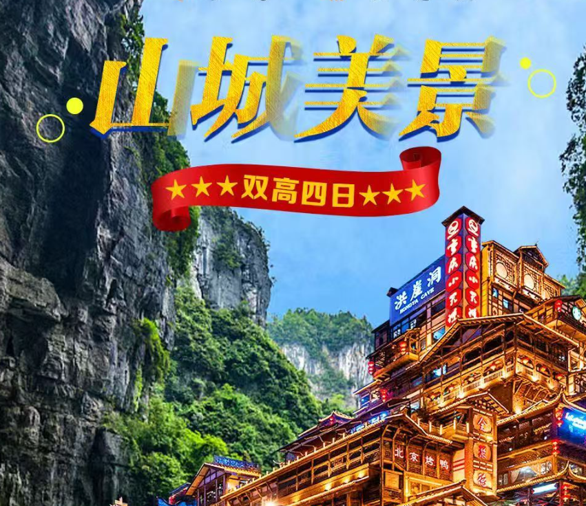 【山城美景】武隆/天生三桥/龙水峡地缝/磁器囗解放碑/洪崖洞+双高4日游